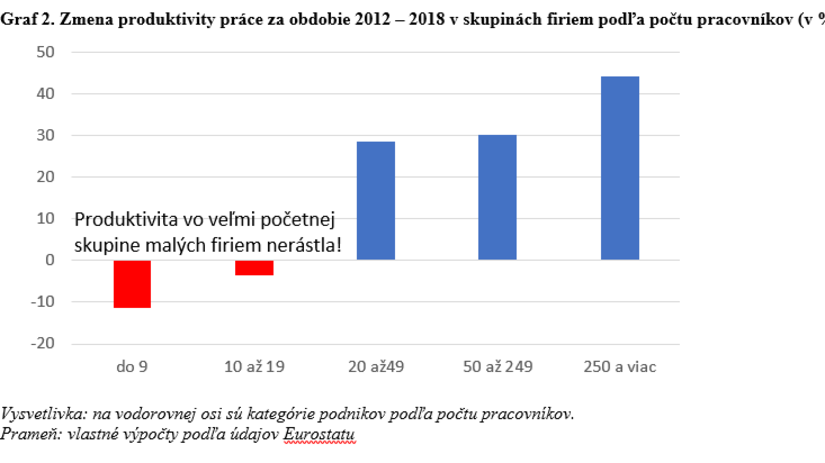 Nesťažujeme sa na to, že väčšie firmy majú väčšiu produktivitu. To je prirodzené. Starosti vyvoláva, že v našej ekonomike menšie firmy zlyhávajú vo zvyšovaní produktivity.