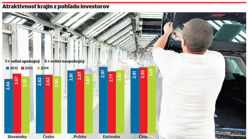 Môže ísť o dôsledok toho, že popri tradičných výhodách, ako je euro či lacná pracovná sila, išla daň z príjmu po náraste z 19 na 23 percent tento rok dole na 22 percent. A vďaka odhaľovaniu únikov daní môže ísť v roku 2015 ďalej dole možno až k 20 percentám. Naopak, najviac investorom prekáža korupcia a sťažujú sa aj na povinný rast platov cez rozširovanie kolektívnych zmlúv vyššieho stupňa. Firmy podľa prieskumu tento rok očakávajú rast platov na úrovni 5,3 %, kým vlani to bolo 7,7 %. Drvivá väčšina firiem by však svoje investície na Slovensku zopakovala aj v ťažších podmienkach.