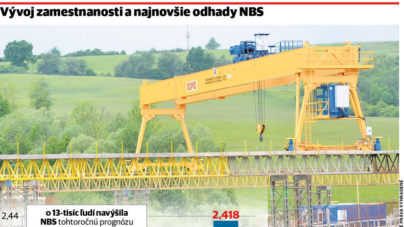 Silný hospodársky rast na úrovni 3,2 percenta v tomto roku by mal podľa aktuálnej prognózy Národnej banky Slovenska (NBS) vytvoriť len v tomto roku 47-tisíc nových pracovných miest, najmä v priemysle a službách, a celkovo by zamestnanosť mala stúpnuť na 2,368 milióna osôb.
