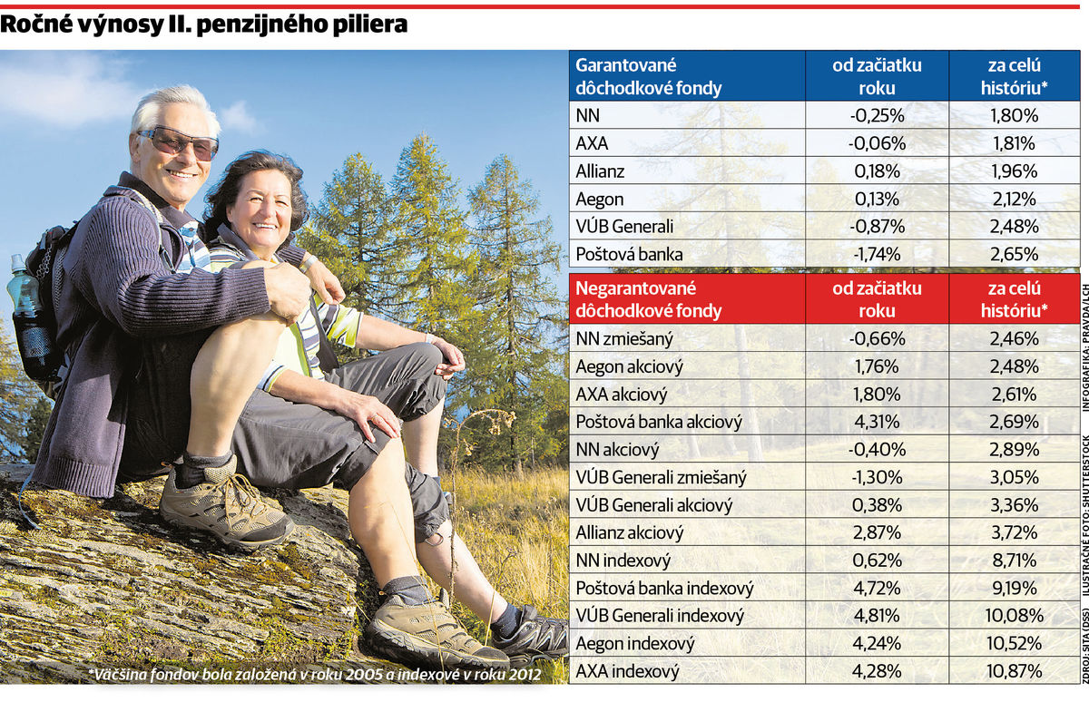 Zo šiestich garantovaných fondov druhého piliera skončili od úvodu roka v straste až štyri fondy. Od januára sa v nich peniaze ľudí znehodnotili od mínus 0,059 percenta do mínus 1,739 percenta. Napriek tomu sa ľudia nemusia báť, že prídu o peniaze, keďže podľa zákona musia prípadné straty uhradiť dôchodkové správcovské spoločnosti z vlastných peňazí.