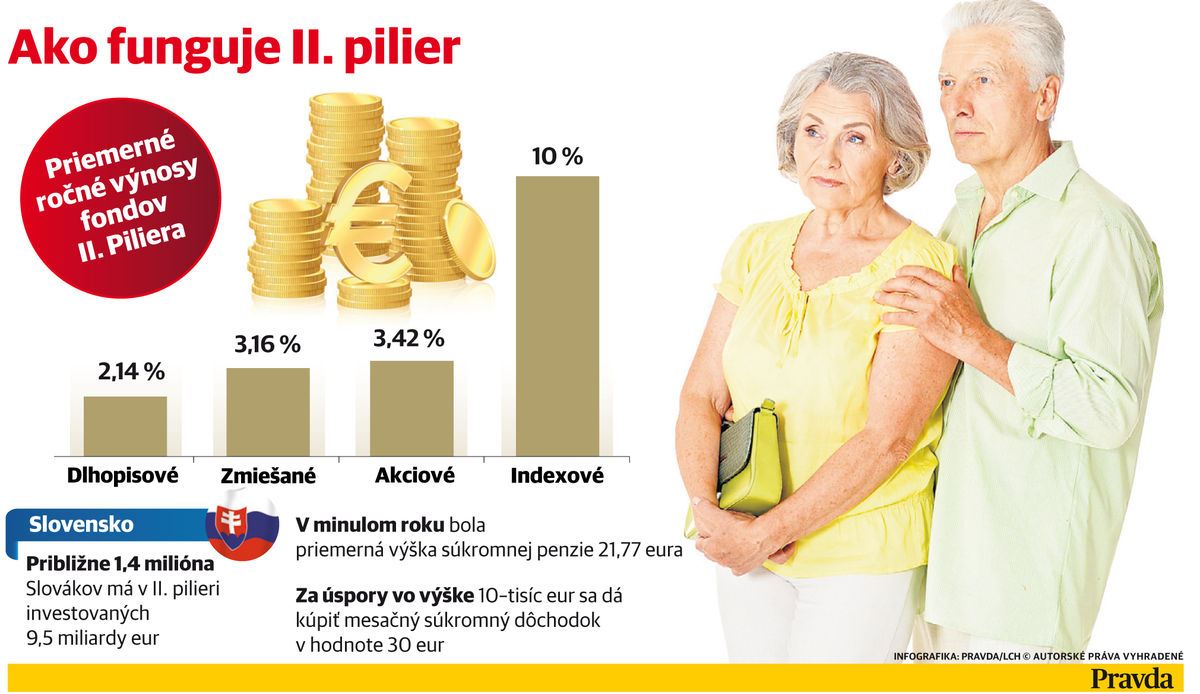 Fungovaniu II. piliera nepomohla ani averzia ľudí k rizikovému investovaniu. Väčšina má totiž uložené peniaze v najmenej zarábajúcich dlhopisových fondoch. Jedine v nich majú totiž dôchodkové správcovské spoločnosti povinnosť doplatiť prípadné straty z vlastných peňazí. Výsledkom je opatrné investovanie s priemerným ročným výnosom vo výške 2,14 percenta.