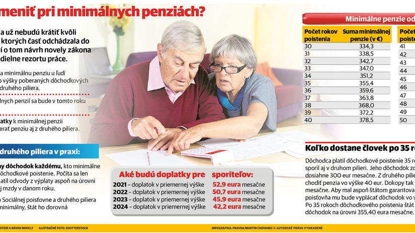 Bez nároku na doplatenie do najnižšej penzie by malo skončiť zhruba 1 900 ľudí. „V prípade týchto osôb predpokladáme, že približne 75 percent z nich následne v rokoch 2021 a 2022 požiada aj o dôchodok z druhého piliera, nakoľko im výplatou dôchodku vznikne nárok na doplatok do minimálneho dôchodku,“ dodal rezort práce.